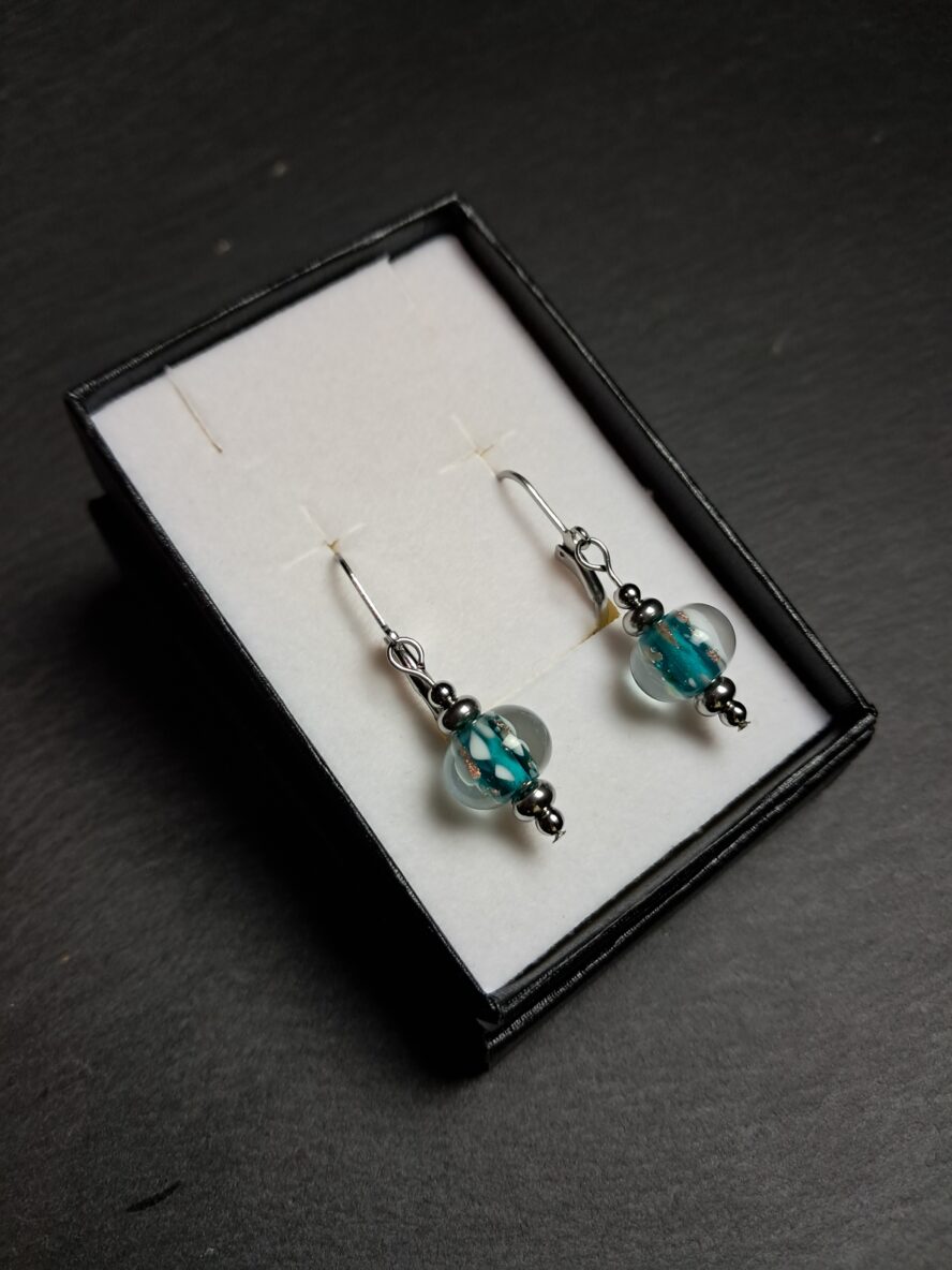 Aventurine, Boucles d’Oreilles, Bleu-Vert.