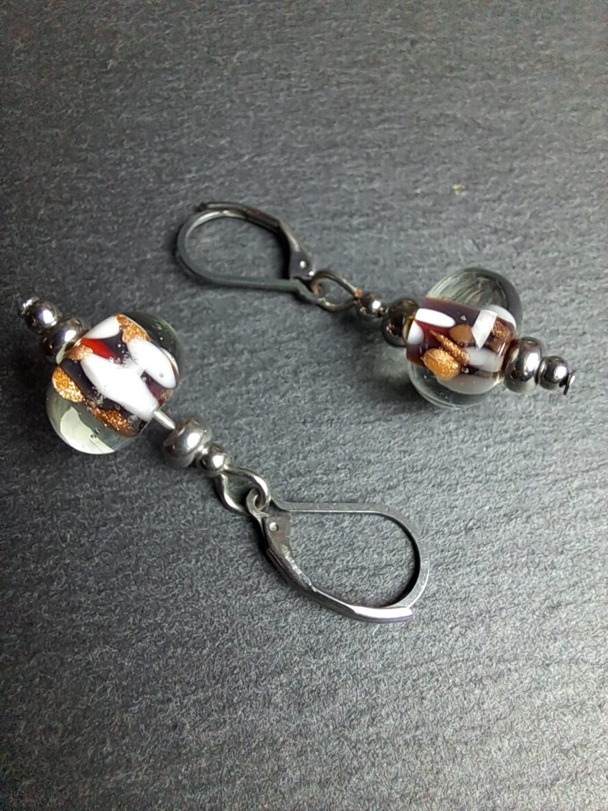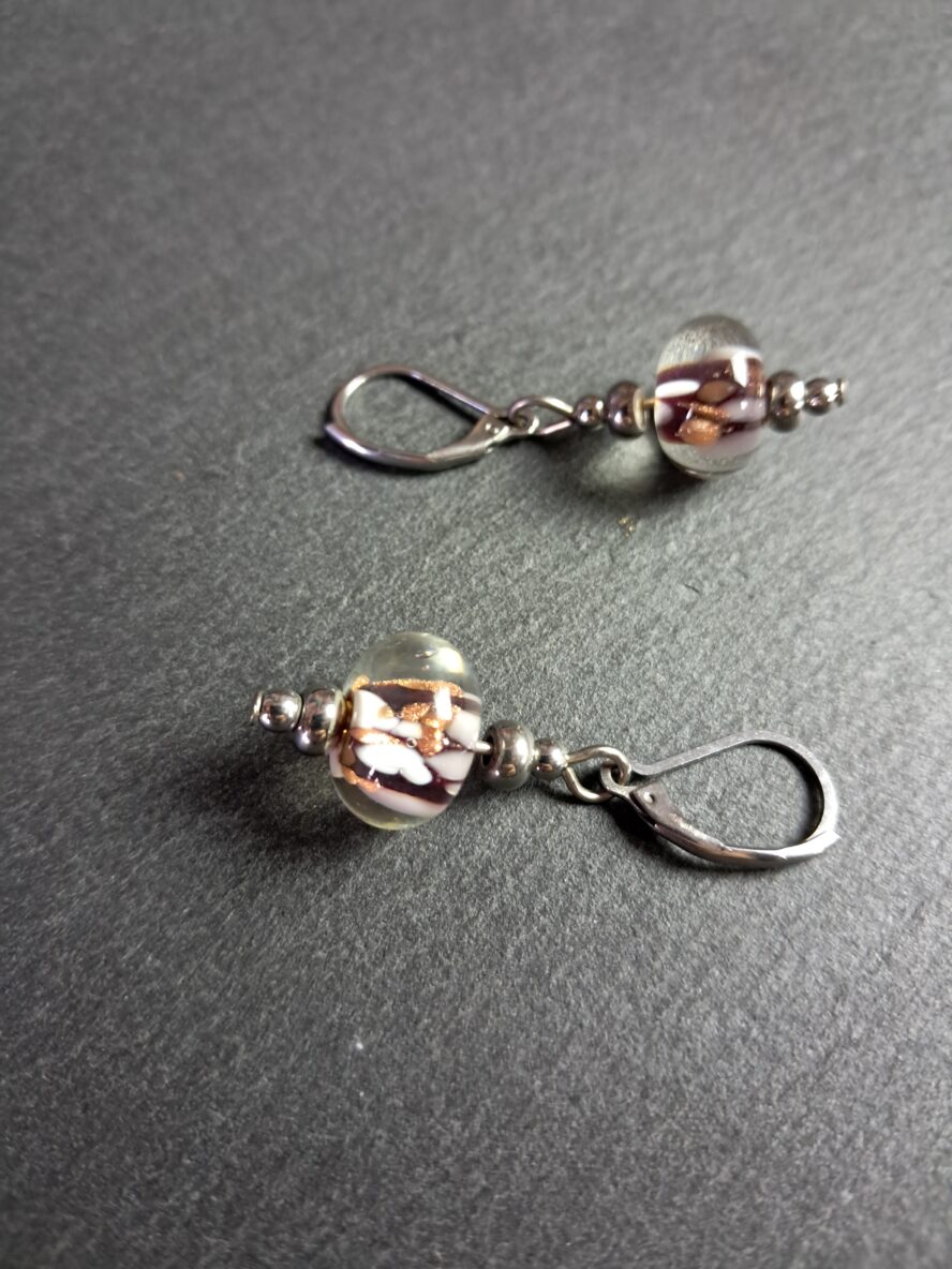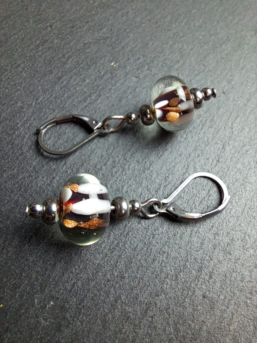 Granulés d’Aventurine et de Cristal de Murano blanc recouverts de Cristal de Murano transparent.