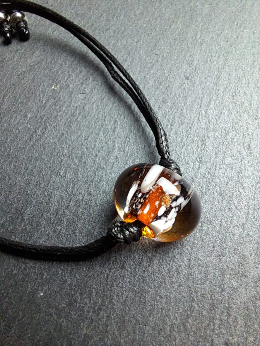 Granulés d’Aventurine et de Cristal de Murano blanc recouverts de Cristal de Murano transparent.
