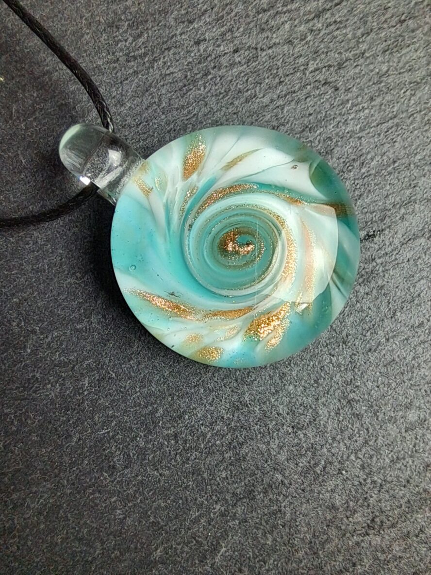 Aventurine, Pendentif Spirale, Bleu-Vert.