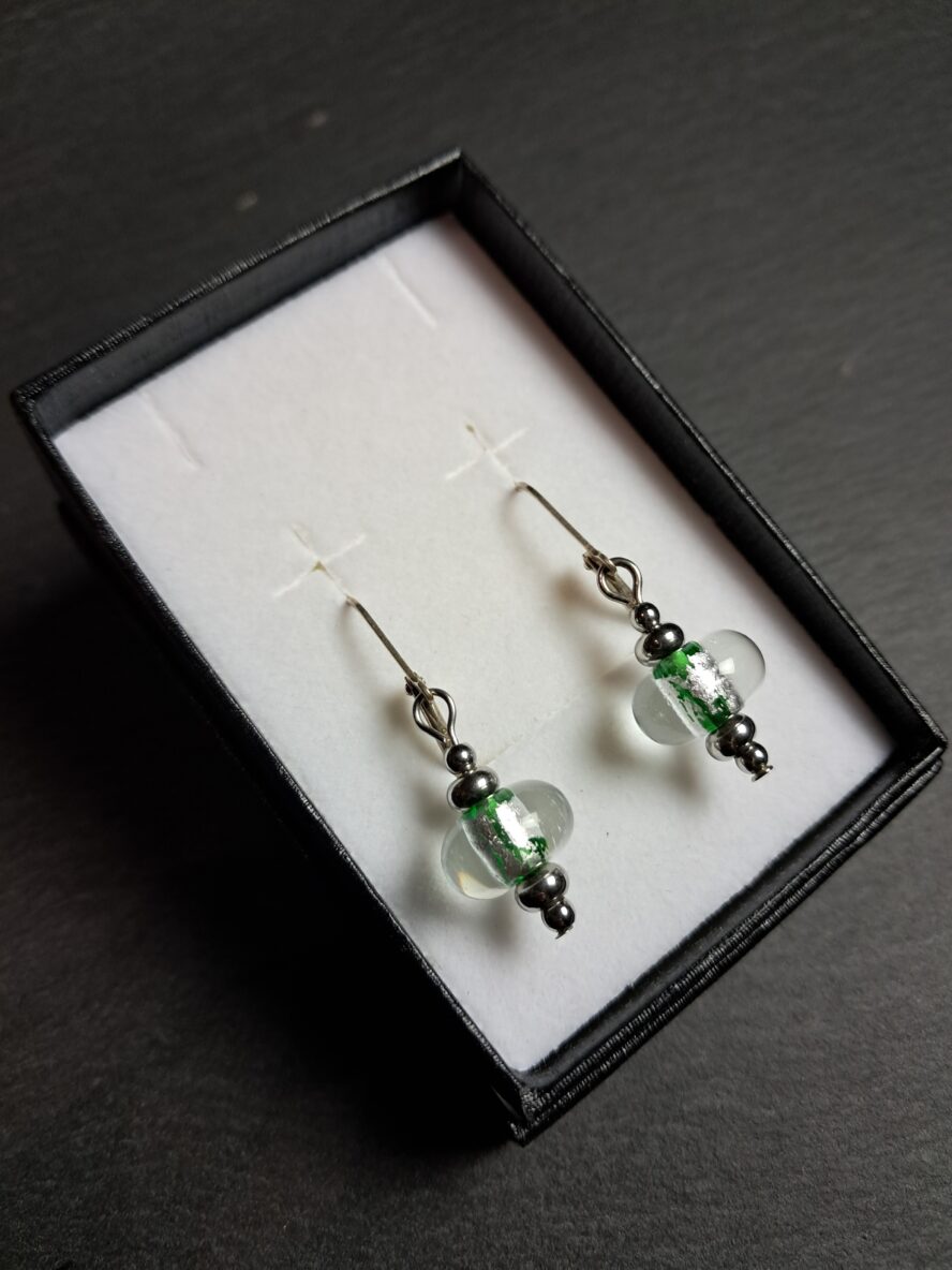 Eclats d’Argent, Boucles d’Oreilles, Vert Emeraude.
