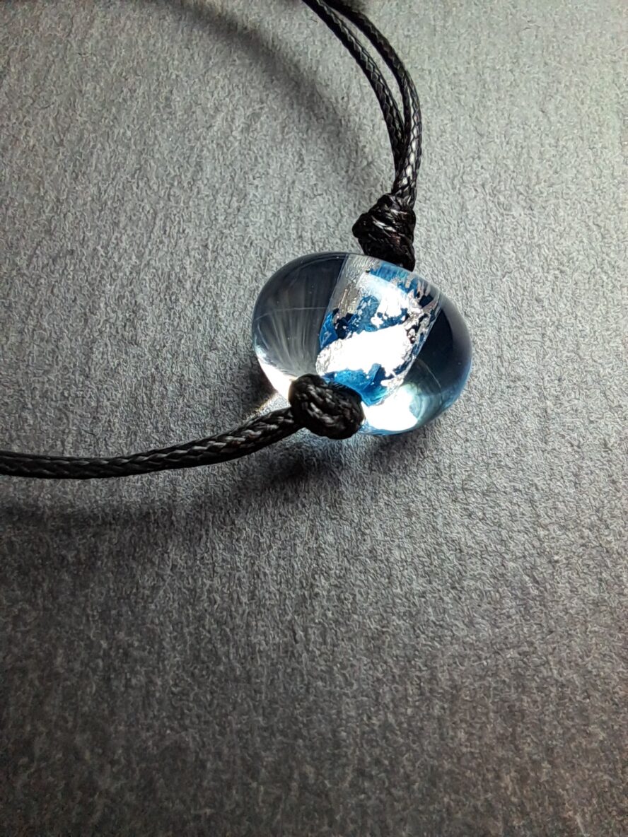 Feuille d’Argent 999/1000 emprisonnée entre deux couches de Cristal de Murano (l’une colorée et l’autre transparente).