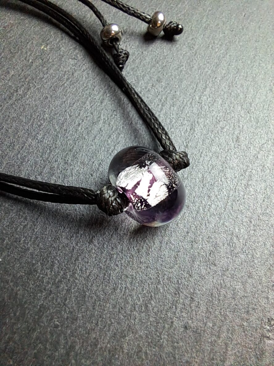 Feuille d’Argent 999/1000 emprisonnée entre deux couches de Cristal de Murano (l’une colorée et l’autre transparente).