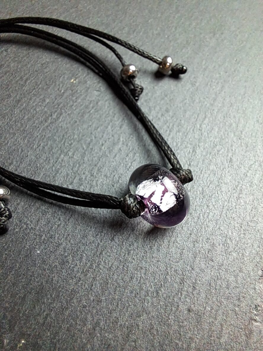 Monture (1) & Perles (*4) (2) : Coton Ciré avec Macramé Ajustable (1) & Acier Inoxydable (2)