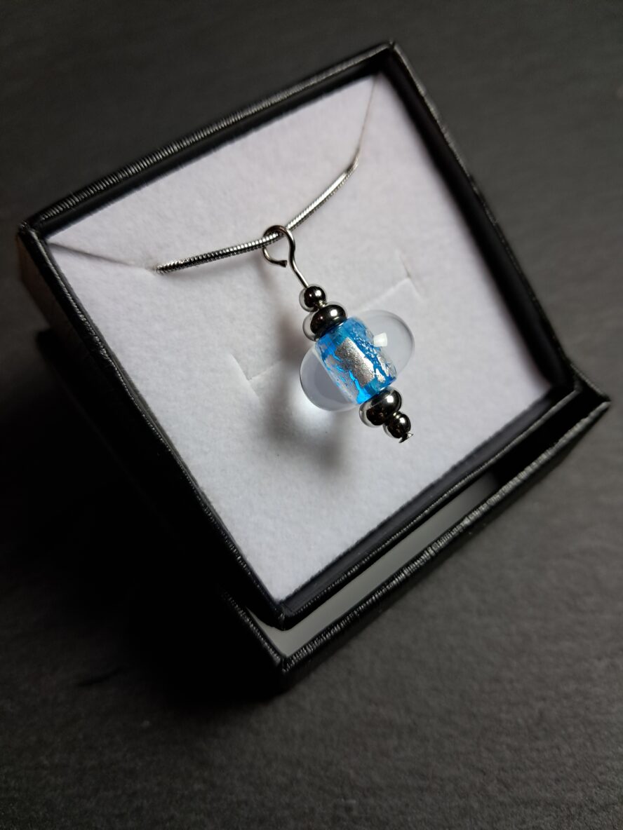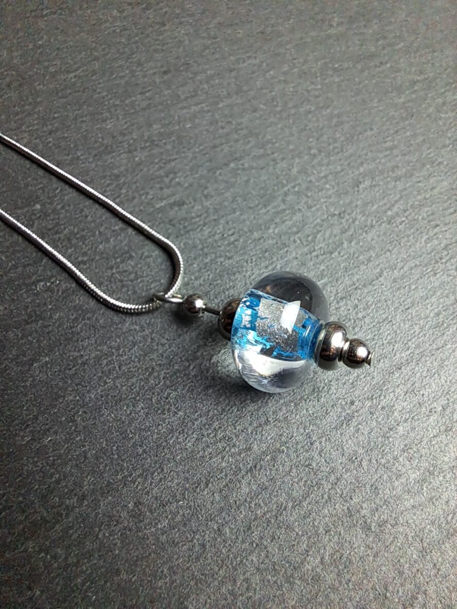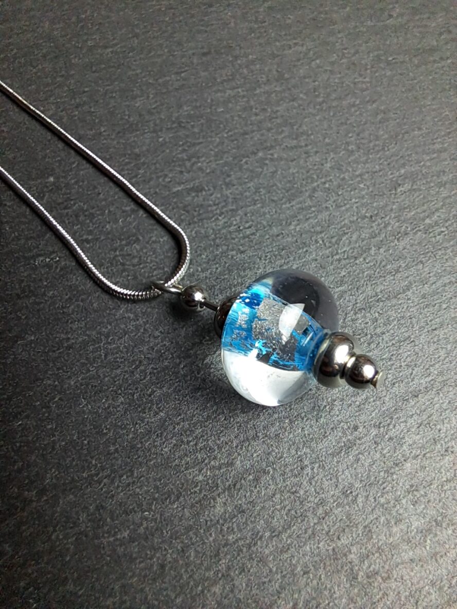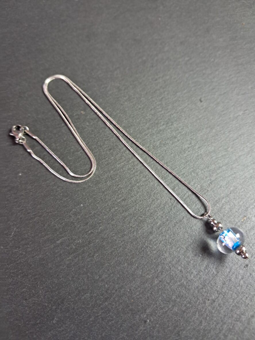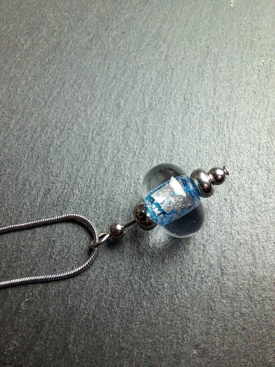Eclats d’Argent, Collier Perle, Bleu Ciel.