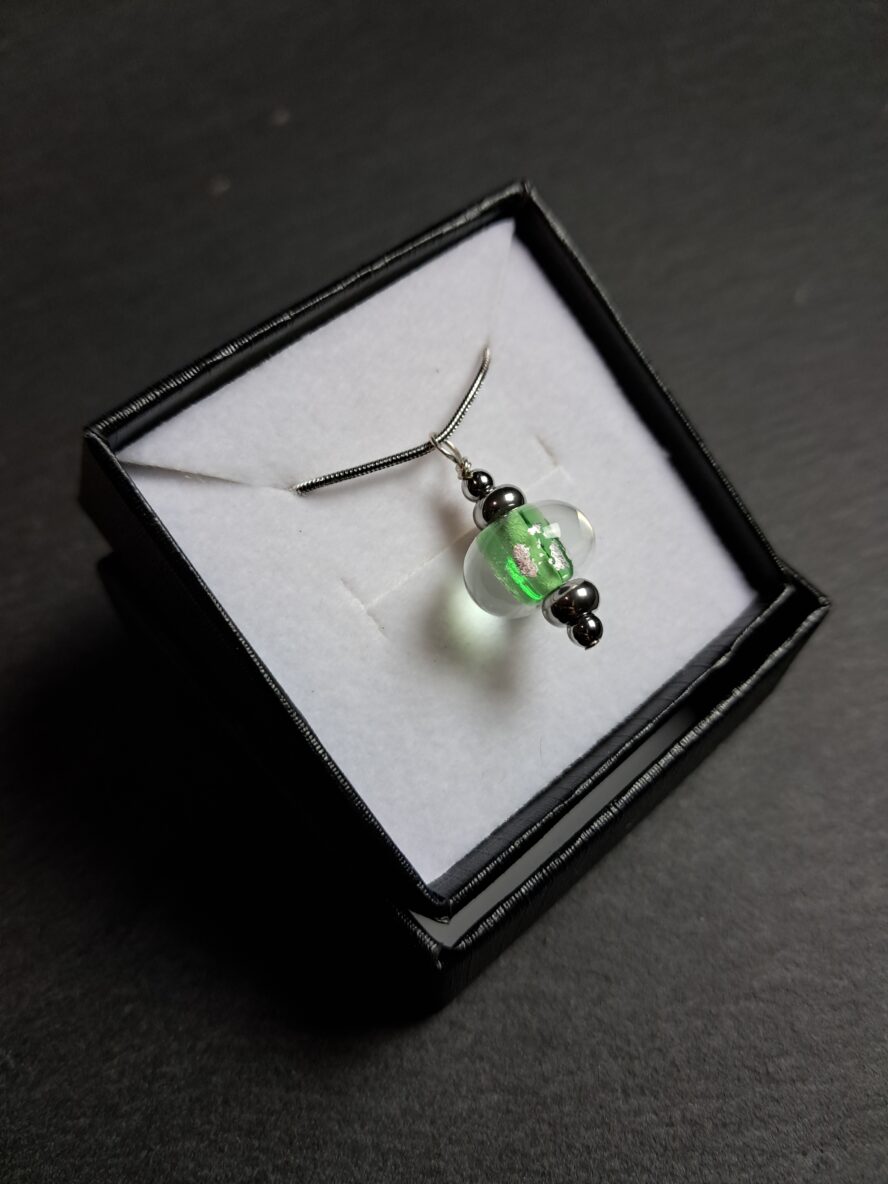 Eclats d’Argent, Collier Perle, Vert Emeraude.
