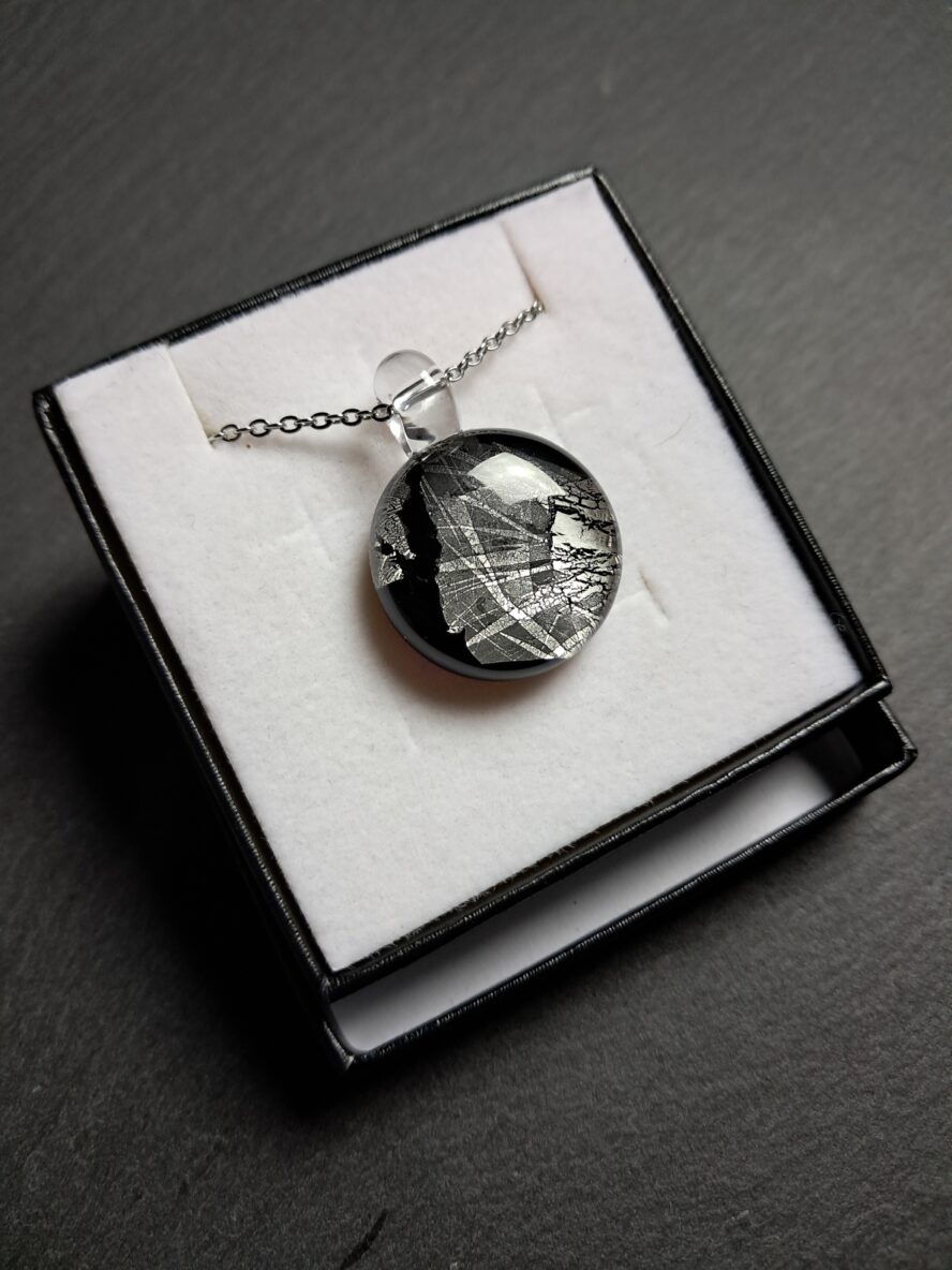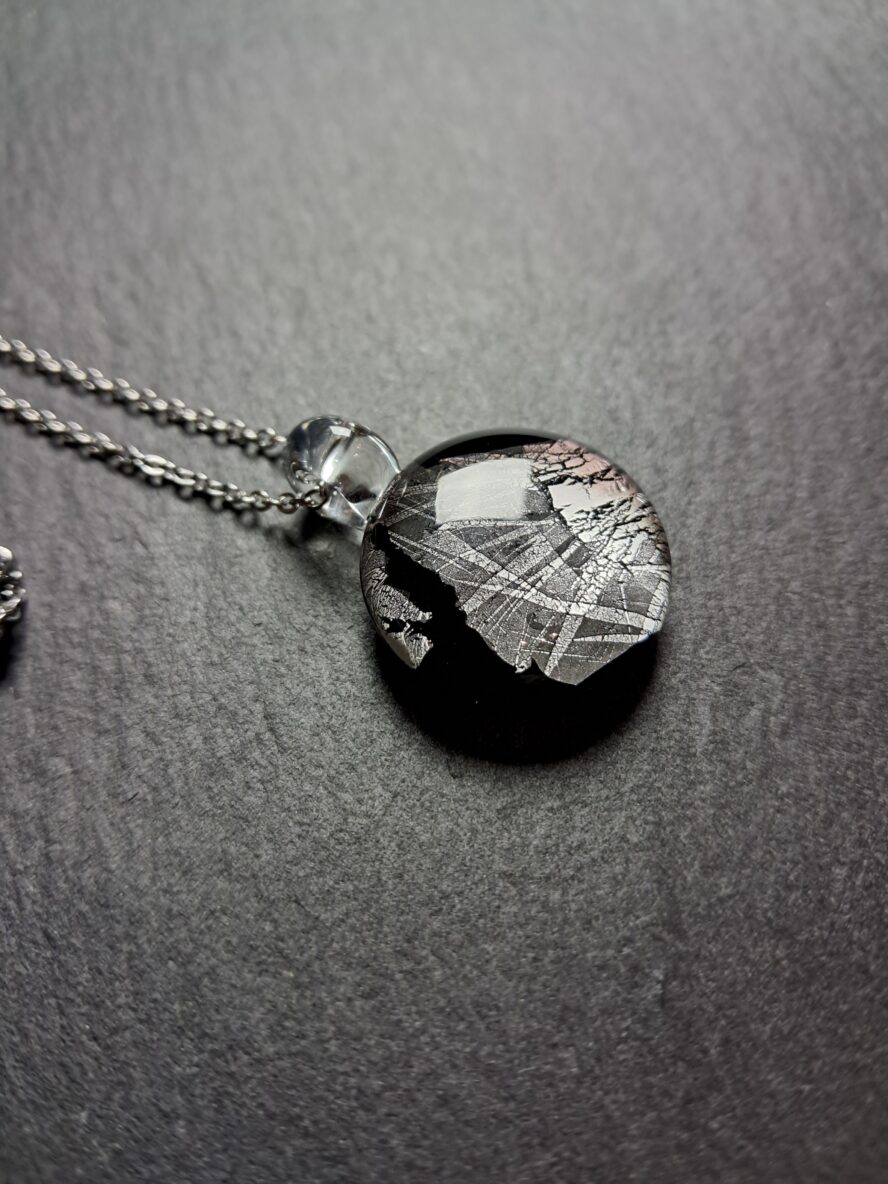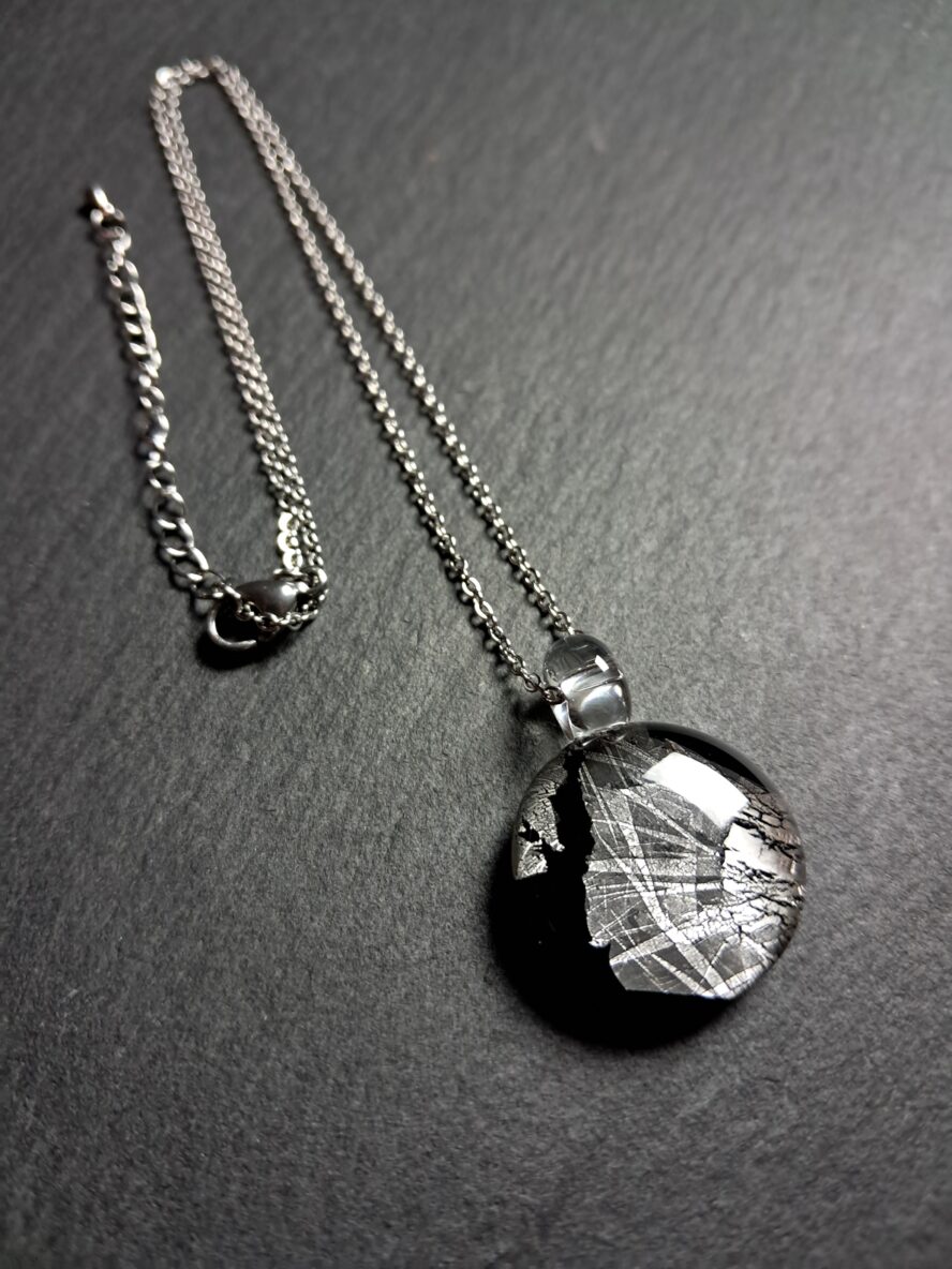Feuille d’Argent 999/1000 emprisonnée entre deux couches de Cristal de Murano (l’une colorée et l’autre transparente).