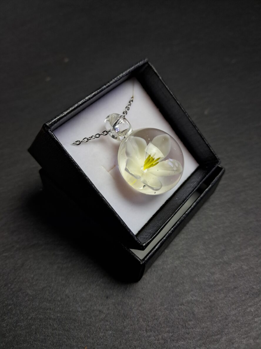 Implosion, Fleur Cinq Pétales, Pendentif, Blanc.