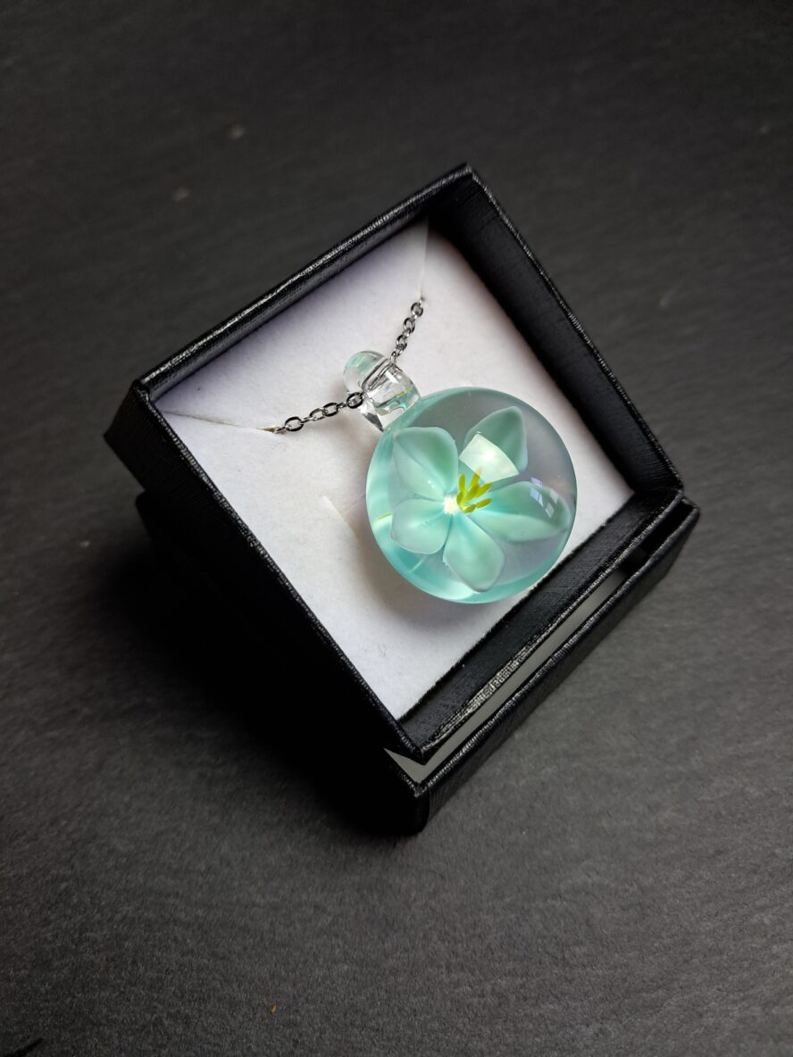 Implosion, Fleur Cinq Pétales, Pendentif, Bleu-Vert.