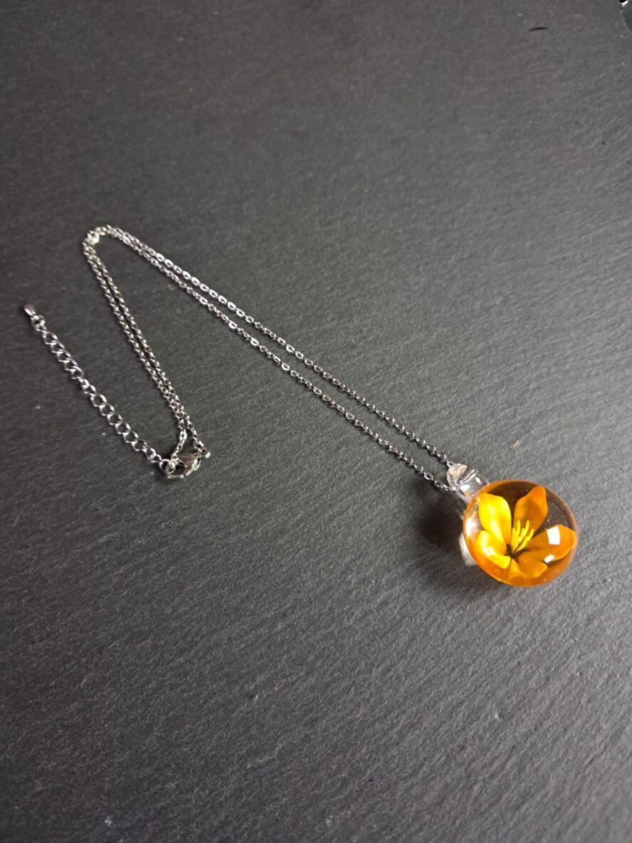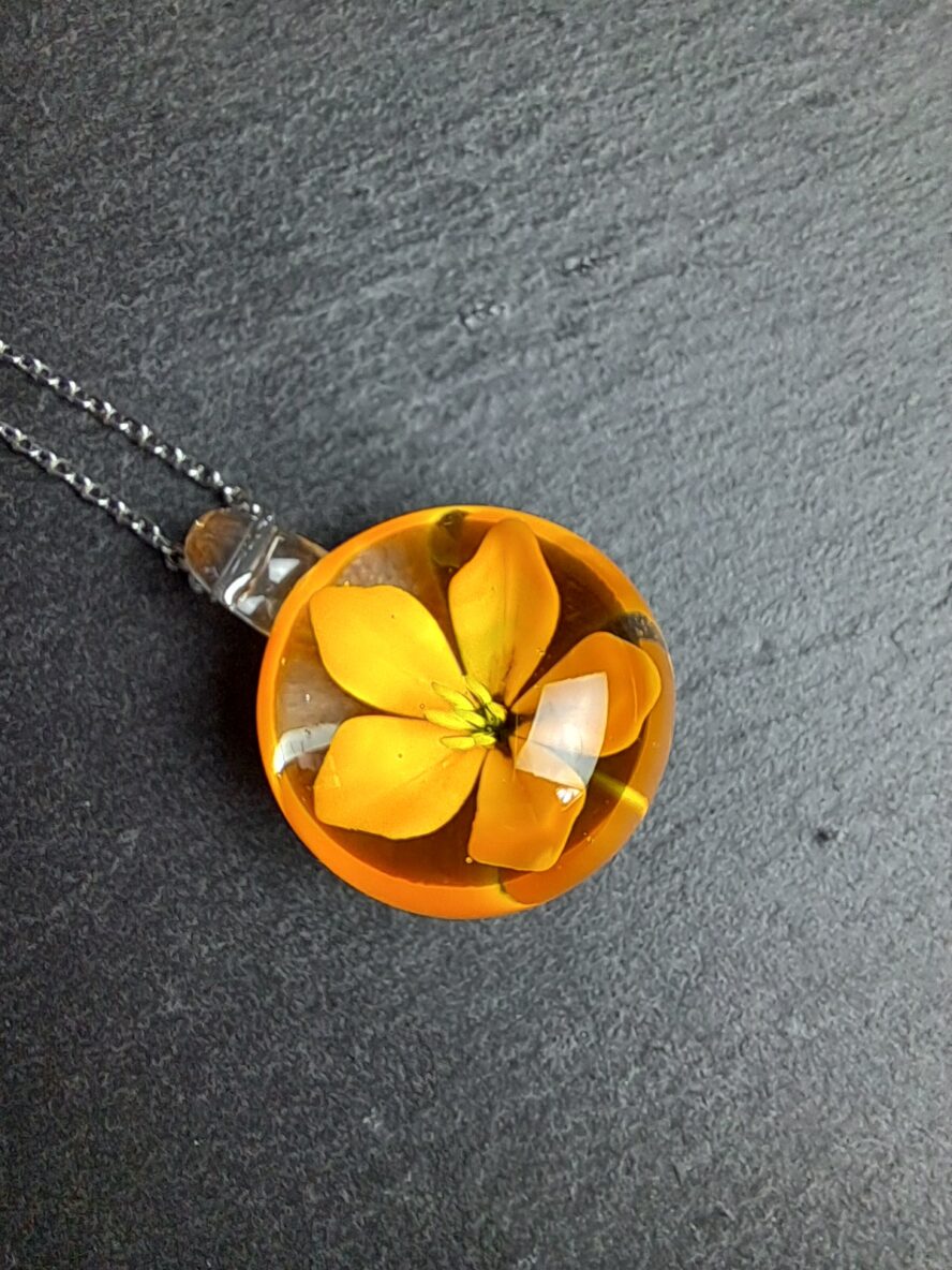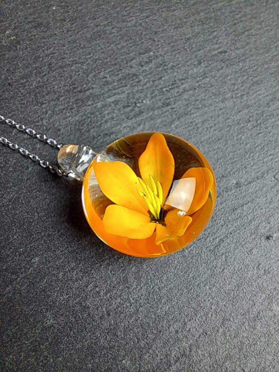 Implosion, Fleur Cinq Pétales, Pendentif, Orange.