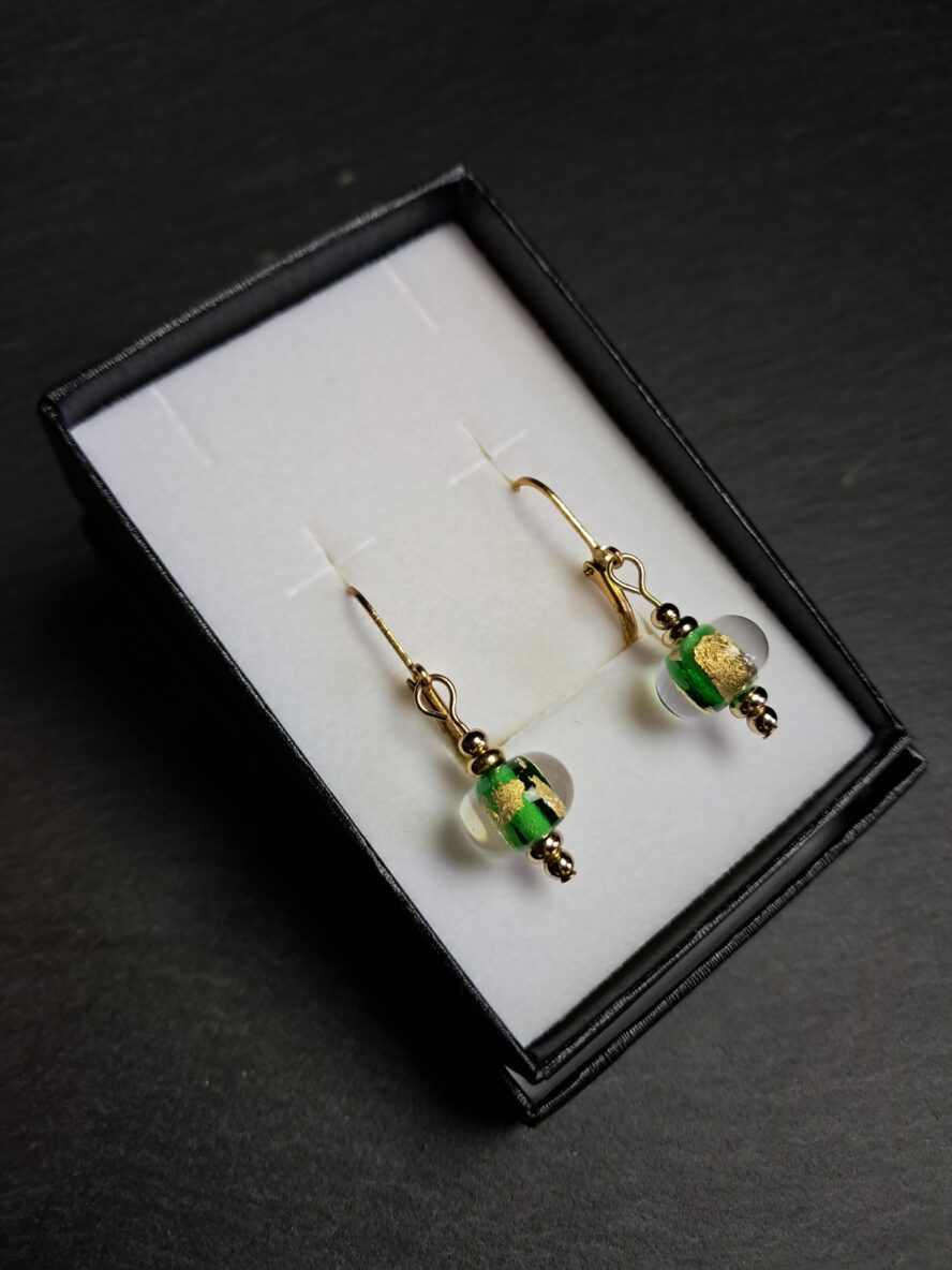 Lumière Dorée, Boucles d’Oreilles, Vert Emeraude.