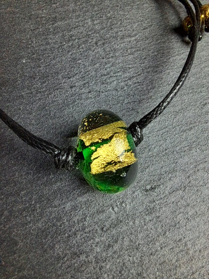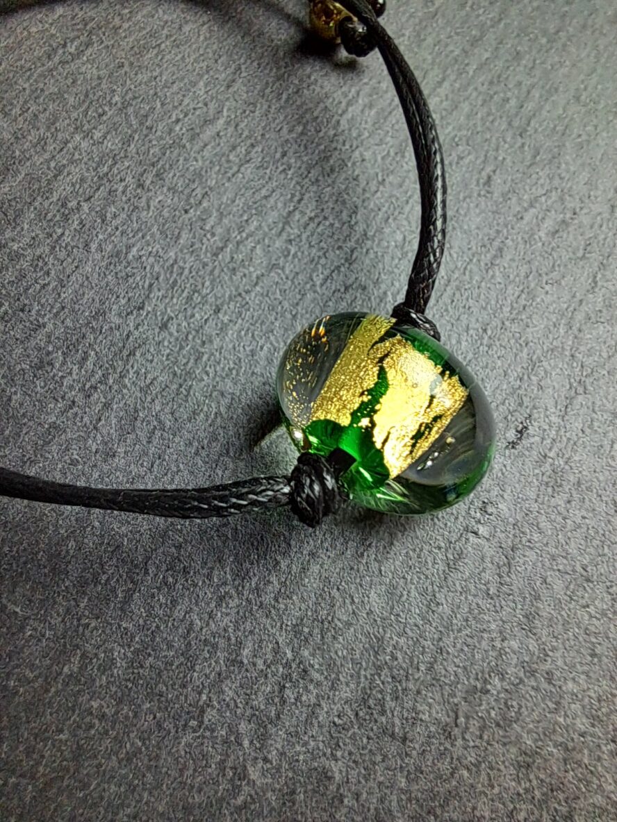 Feuille d’Or 24 Carats emprisonnée entre deux couches de Cristal de Murano (l’une colorée et l’autre transparente).